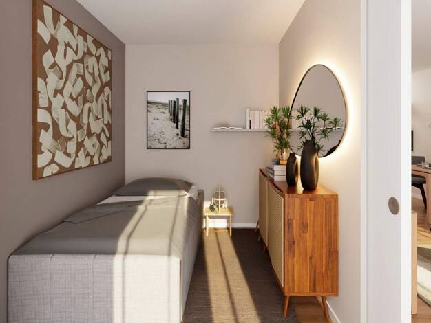 Die kompakte Wohnung liegt im neuen Wohnquartier „Campus Wohnen“ zwischen Süsterfeldstraße und dem geplanten Campusband. Das noch im Bau befindliche Gebäude ist Teil einer Quartiersentwicklung, von d...