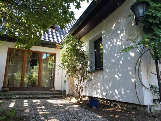 Ebenerdiges Wohnen mit Einliegerwohnung und wunderschön eingewachsenem Garten! Am Ende einer Sackgasse und direkt am idyllischen Wanderweg gelegen, überzeugt der Bungalow durch eine klare, ebenerdige...