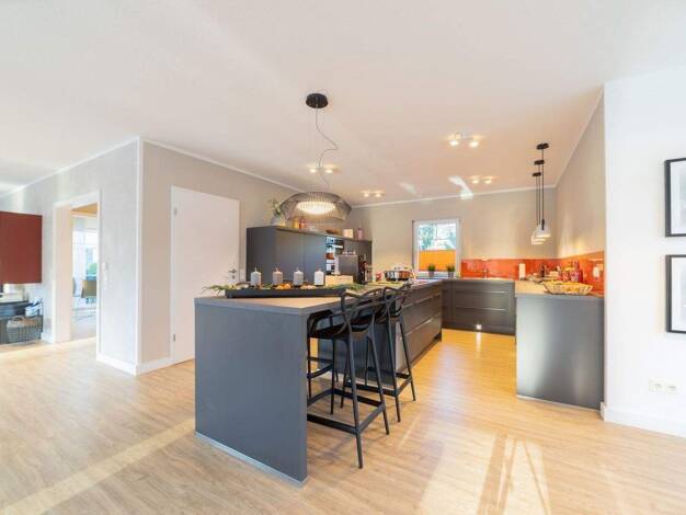 Das Home 11 begeistert mit einer großzügigen Wohnfläche von 166 m², die ideal ist, um Ihre persönlichen Wohnideen zu verwirklichen. Der lichtdurchflutete, offene Wohn- und Essbereich, der direkten Zu...