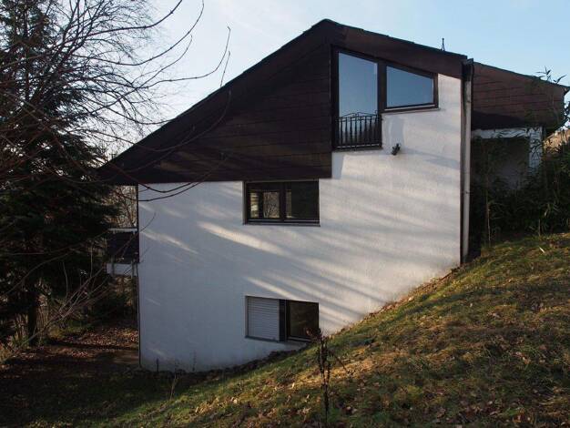 Das Einfamilienhaus befindet sich an einem Hang, ist einstöckig und hat einen Keller. Es verfügt über ein ausgebautes Dachgeschoss mit einer Wohnfläche von 109 m² und wurde im Jahr 2000 erbaut. Die R...