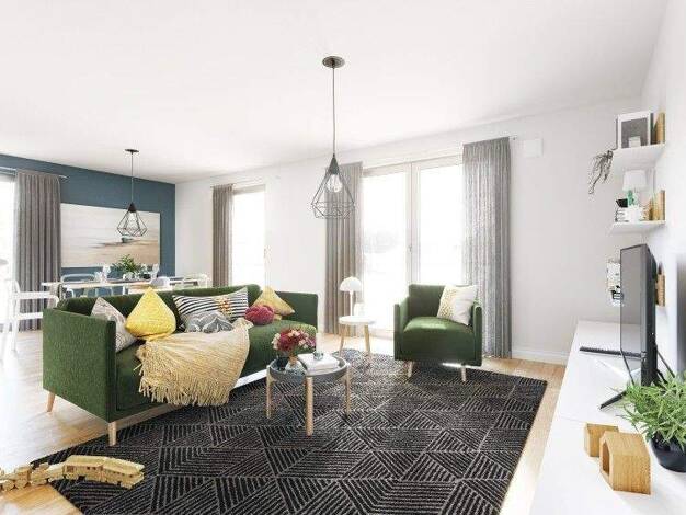 Das Mitwachshaus Flair 148 hat alles, was ein Haus zum Wohlfühlen benötigt: ein gemütliches Wohnzimmer mit hellem Essbereich und großen Fenstern, die viel Tageslicht hinein lassen. Die geräumige Küch...