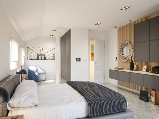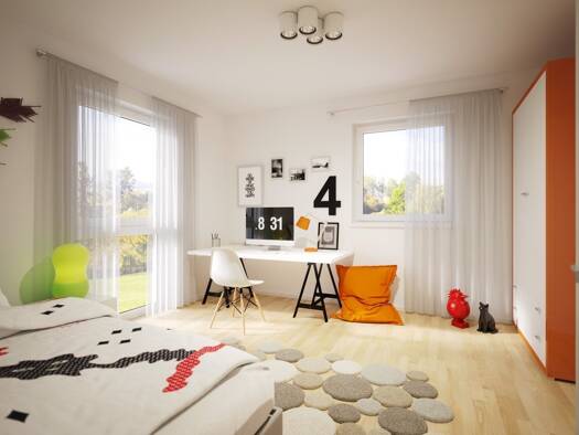 Der Lieblingsplatz der Stadtvilla 12 ist schnell ausgemacht: im Obergeschoss, direkt im Bereich des Erkers, der mit zwei großen Fenstern punktet. Hier ist der Rückzugs-, Lern- und Spielort für die be...