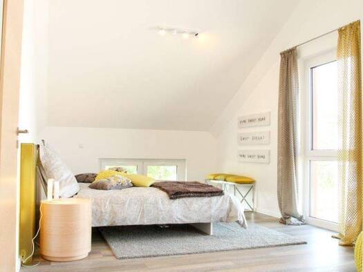 Unser Home 9 - Großzügigkeit für die ganze Familie. Mit fast 160 m² Wohnfläche und vier Schlafzimmern bietet dieses Einfamilienhaus ausreichend Platz für große Familien und alle, die Raum zum Leben b...