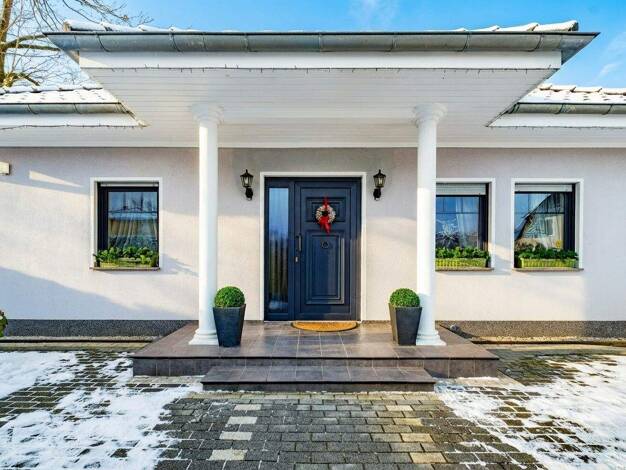 Dieses Haus vereint zeitlose Architektur mit einem durchdachten Grundriss, der großzügigen Raum für Familie, Freunde und persönliche Wünsche bietet. Bodentiefe Fensterflächen lassen viel Tageslicht h...