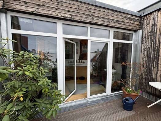 Diese bequem mit einem Personenaufzug erreichbare Wohnung gehört zu den begehrten obersten Einheiten ohne Nachbarn darüber. In dieser Topposition kann die sonnige Westausrichtung intensiver zur Raumh...