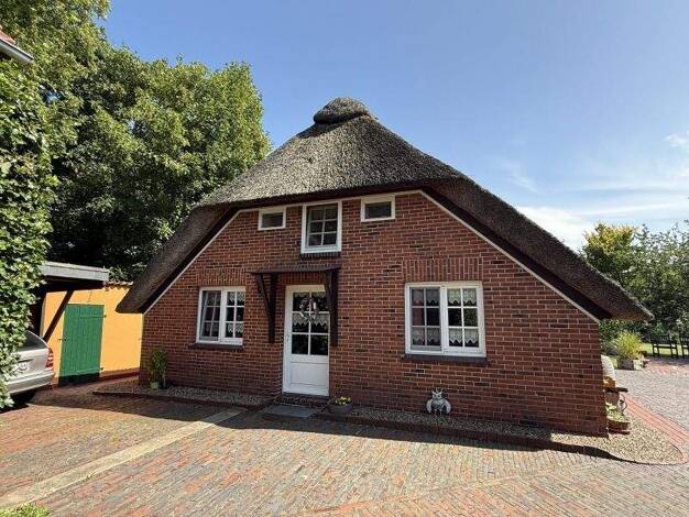 Inmitten des Küstenortes Butjadingen Burhave befindet sich dieses außergewöhnliche, reetgedeckte Einfamilienhaus aus dem Jahr 1679. Die Immobilie verbindet historischen Charme mit ruhigem Landleben i...