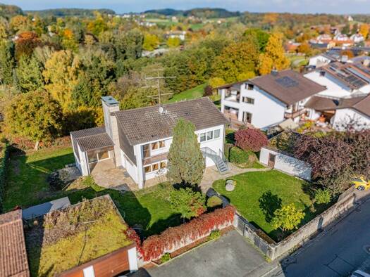 Dieses besondere Haus liegt auf einem großzügigen Hanggrundstück mit über 1.000 m² Fläche und verbindet naturnahes Wohnen mit beeindruckenden Ausblicken und flexiblen Nutzungsmöglichkeiten. Auf ca. 1...