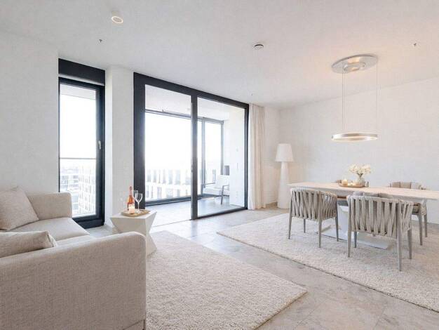 Im 8. Obergeschoss des renommierten Henninger Turms in Frankfurt am Main präsentiert sich ein exklusives Zwei-Zimmer-Appartement, das urbanen Lifestyle, architektonische Klarheit und technischen Komf...