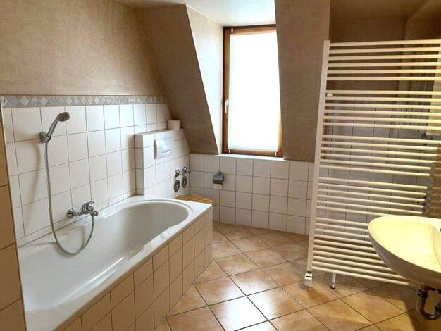 Diese Maisonettewohnung erstreckt sich über zwei Ebenen und bietet ein besonderes Wohngefühl mit klar getrennten Wohnbereichen. Der Blick über die Dächer von Fürth verleiht der Wohnung eine offene, u...