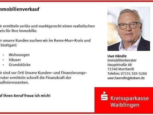 Die Wohnung befindet sich im 1. Obergeschoss eines gepflegten Wohnhauses in Murrhardt. Sie verfügt über drei gut geschnittene Zimmer und ist mit einem Laminatboden ausgestattet. Eine Einbauküche ist ...