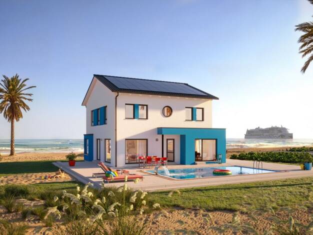 Dieses LivingHaus ist ein individuell projektiertes Einfamilienhaus, das ganz nach deinen Wünschen und Vorstellungen gefertigt wird. Mit einer Wohnfläche von 125 Quadratmetern und fünf Zimmern auf zw...