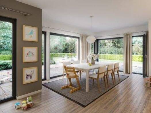 Im Home 14 ist alles etwas mehr. Mehr Licht, mehr Blick in den Garten, mehr Zimmer für Hobby, Freunde, Ruhe und Entspannung. Im Erdgeschoss warten ein großzügiger Wohn- und Essbereich mit offener Küc...