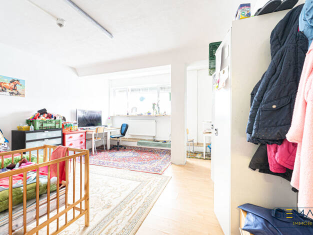 Die Wohnung liegt im ersten Geschoss in einem Haus mit insgesamt nur zwei Etagen und ist zur straßenabgewandten Seite ausgerichtet. Vom Wohnzimmer aus lässt sich die sonnige Südloggia erreichen. Die ...