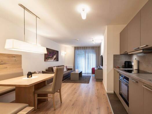 Entdecken Sie diese charmante Suite für 4 Personen, die mit hellem, modernem Alpen-Stil beeindruckt. Die Südwest-Terrasse mit kleinem Gartenanteil sorgt für reichlich Sonnenlicht und eine warme Atmos...