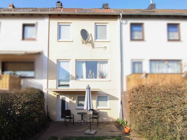 Objektnr: 1068659 Dieses charmante Reihenmittelhaus bietet auf kompakter Fläche alles, was man zum Wohlfühlen benötigt. Mit insgesamt 3 Zimmern, einem großzügigen Flurbereich im Obergeschoss sowie ei...