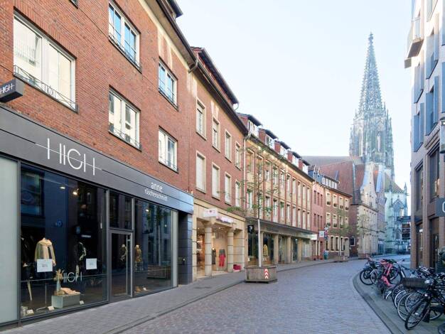 Die beiden nebeneinander liegenden Ladenlokale befinden sich am "Alten Fischmarkt", einem Eingangstor zur Münsteraner Innenstadt, welches seit der Quartiersentwicklung in 2012 eine besondere Aufwertu...