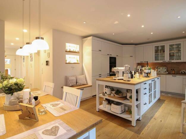 Die Wohnungen im Erdgeschoss und im ersten Stock sind jeweils ca. 102 m² groß und verfügen über 4 Zimmer. Sie sind liebevoll gestaltet und umfassen eine moderne Küche, ein helles, geräumiges Wohnzimm...