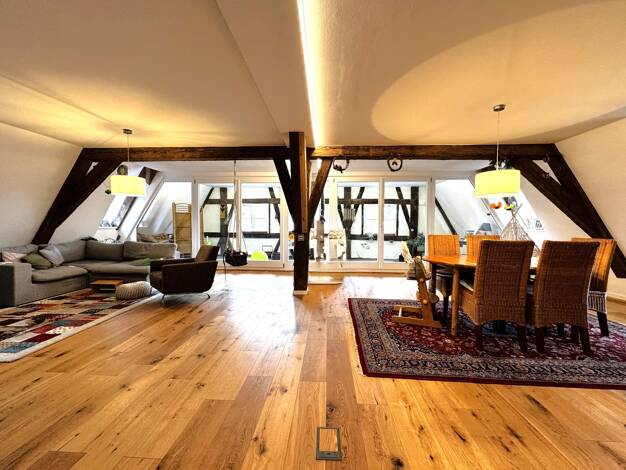 VON POLL IMMOBILIEN bietet Ihnen die Gelegenheit für den Erwerb dieser exklusiven Dachgeschosswohnung, die sich in einem historischen Gebäude aus dem Jahr 1460 inmitten der Nördlinger Altstadt befind...