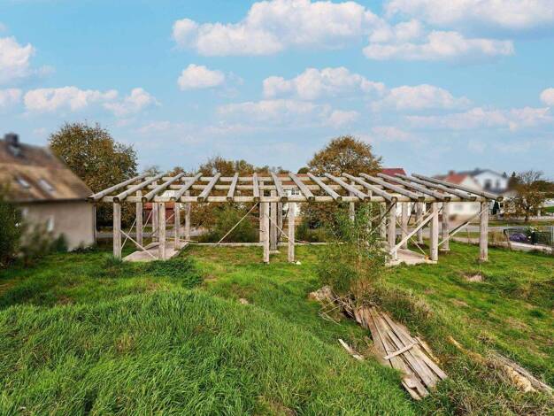 Auf dem 1.259 m² großen Grundstück befindet sich das Wohnhaus, zwei Garagen, eine große Scheune (mit weiterem Ausbaupotential) und zahlreiche Schuppen. Die vorhandene überdachte Terrasse im Gartenber...