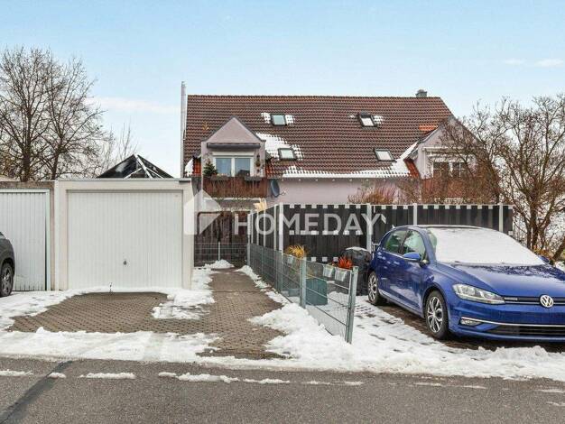 Die im Jahr 2013 in massiver Bauweise mit Satteldach errichtete Doppelhaushälfte bietet mit einer Wohnfläche von ca. 116 m² ein angenehm geschnittenes Zuhause auf einem Grundstück von ca. 335 m². Zus...