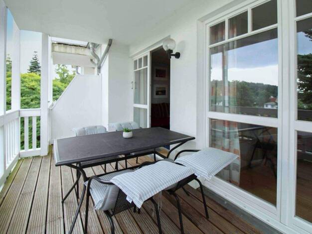 Auf Rügen leben, heißt am Meer leben: Im Ostseebad Sellin befindet sich die Strandvilla "Philine" mit einer Luxuswohnung und einem ca. 18 m² großen Balkon inmitten einer Dünenlandschaft. Die Villa is...