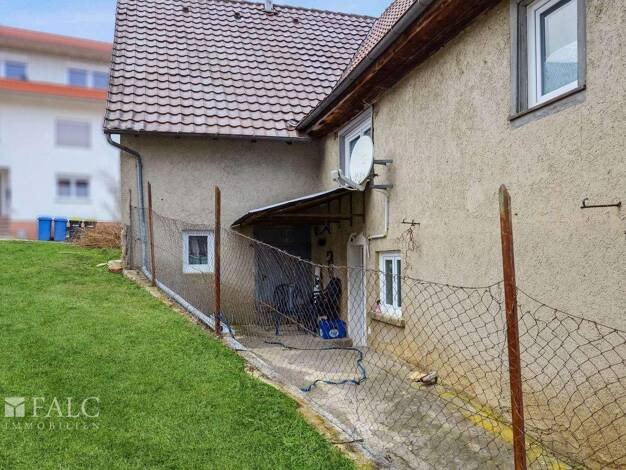 Das Wohnhaus wurde 1952 errichtet und liegt am Rande von Rohrdorf, einem Ortsteil von Meßkirch. Im Erdgeschoss gibt es ein charmantes Wohnzimmer mit Kachelofen und direktem Zugang zur großen Terrasse...