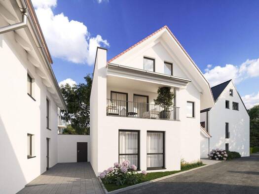 Vier Häuser. Ein Statement. Das Neubauensemble besteht aus vier individuell real geteilten Reihenhäusern, ausgeführt in massiver Kalksandstein-Bauweise, mit klarer Architektursprache und kompromisslo...