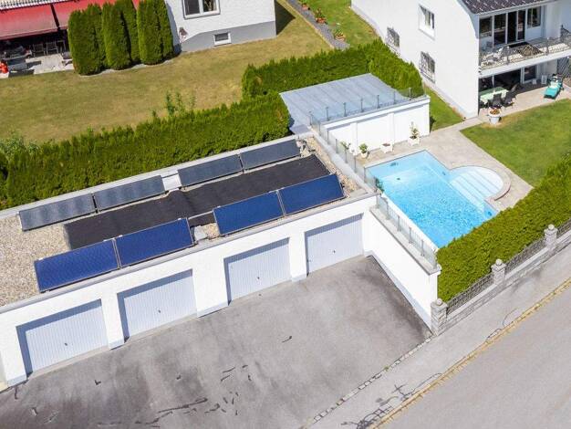 Deggendorf/Aussichtslage: Exklusives und energetisch saniertes Wohnhaus mit Pool, Photovoltaik-Anlage, 6 Garagen u. ca. 1.000 m2 Grundstück, traumhafter, kaum einsehbarer Garten in ruhiger Anliegerst...