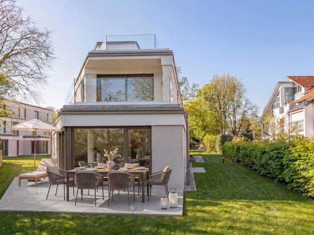 Eine geradlinige, moderne Formensprache, ein gelungenes Raumkonzept und die absolut ruhige, äußerst begehrte Lage im noblen Gräfelfinger Villenviertel prägen diesen Neubau, der im Rohbau-Stadium zum ...