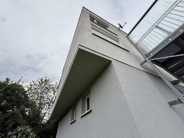 Kurzübersicht: Diese im Jahre 2011 erbaute Villa besticht durch ihre architektonisch extravagante Bauweise. Das Gebäude verfügt über ein Pyramidendach und ist in Massivbauweise errichtet. Der befahrb...
