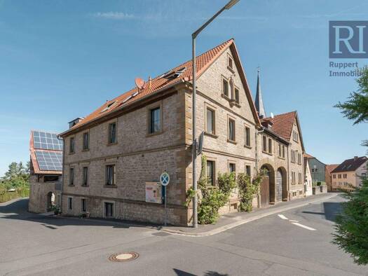 Das praktisch geschnittene, massive Bruchsteinhaus (Baujahr ca. 1930) befindet sich in zentraler Lage der historischen Altstadt von Dettelbach, nahe dem Alten Rathaus. Auf ca. 191 m² Wohnfläche und e...