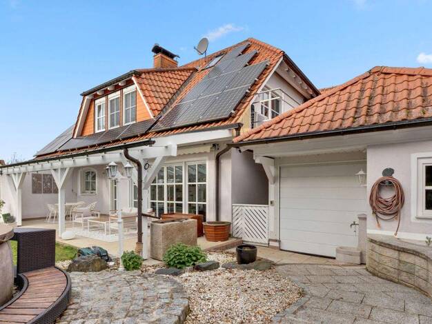 Das Haupthaus erstreckt sich über drei Ebenen und bietet derzeit rund 253 m² Wohnfläche. Im Jahr 2019 wurde das Dach vollständig erneuert; in diesem Zuge erfolgte auch der Ausbau des Dachgeschosses, ...