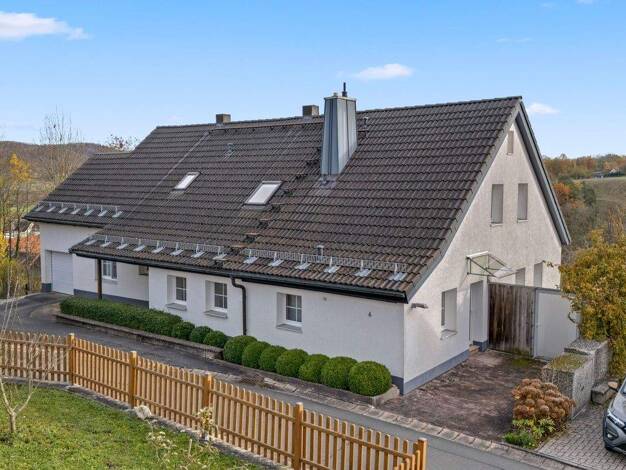 Zweifamilienhaus mit Einliegerwohnung in Wirsberg Dieses großzügige Zweifamilienhaus mit Einliegerwohnung befindet sich in ruhiger, naturnaher Westhanglage von Wirsberg und bietet mit insgesamt ca. 2...