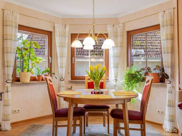 Das großzügige Haus mit dem schönen Satteldach überzeugt mit viel Platz und einem variablen Grundriss. Das Wohnzimmer schenkt genügend Raum zur Erholung, die sich anfügende Essecke wird schnell zum g...