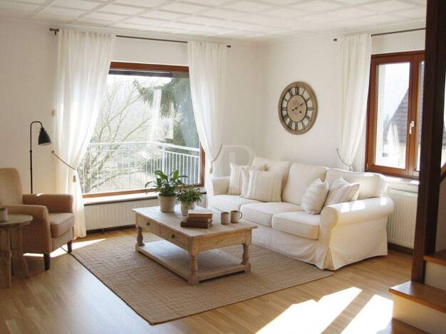 Hier erwarten Sie rund 160 m² Wohnfläche, die den idealen Rahmen für ein behagliches Zuhause bieten. Das gemütliche Wohnzimmer bildet gemeinsam mit dem angrenzenden, unbeheizten Wintergarten sowie de...