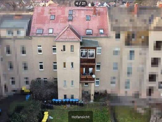 Das als Reihenendhaus errichtete MFH entstand etwa im Jahr 1910 massiv, mit Keller, zwei Vollgeschossen und einem ausgebauten Dachgeschoss, einer Dreiecksgaube im DG-Bereich, einem Holzbalkendachstuh...