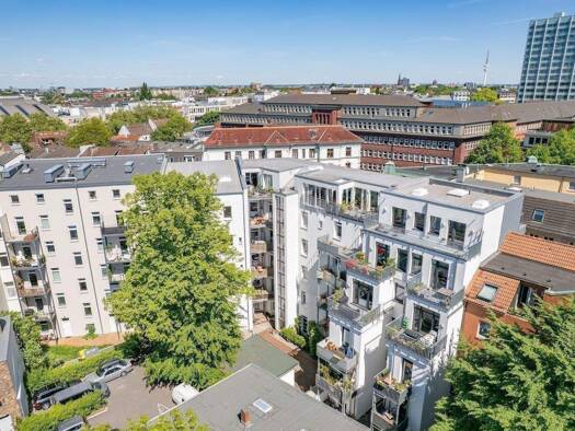 Hier, an der Baron-Voght-Straße 140, entstehen sechs exklusive Wohnungen bieten durch bodentiefe Fenster, Loggien, Terrassen und teils eigene Gärten ein nahezu nahtloses Zusammenfließen mit der Natur...