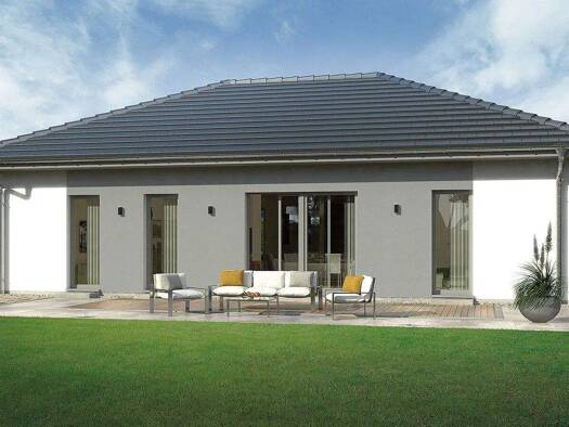 Unser Bungalow 1 Walmdach bietet auf einer Wohnfläche von 107 m² alles, was die Kleinfamilie zum Wohnen und Wohlfühlen benötigt. Das kombinierte Wohn-Ess-Zimmer ist großzügig geschnitten und dank dre...