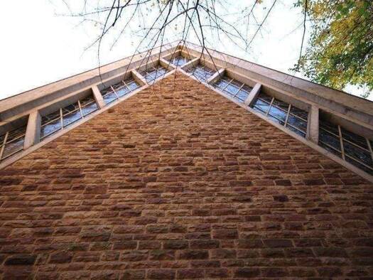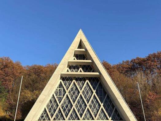 Objektbeschreibung Einzigartige Architektur in Zeltform. Bleiverglasung auf der Vorder- und Rückseite, Die Deckenhöhe des Kirchenschiffs beträgt ca. 11 m. Natursteinfassade, Empore mit Blick über das...