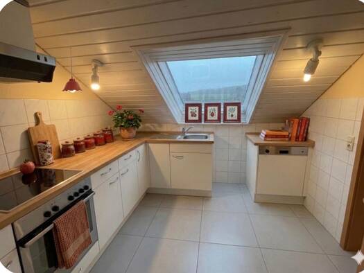 Wohnen barrierearm auf einer Etage, dazu gibt es noch einen großen Dachspeicher und sechs Kellerräume. Auf 105 Quadratmetern gibt es ein großes Wohn-Esszimmer, drei weitere ZImmer, Küche, ein Bad und...