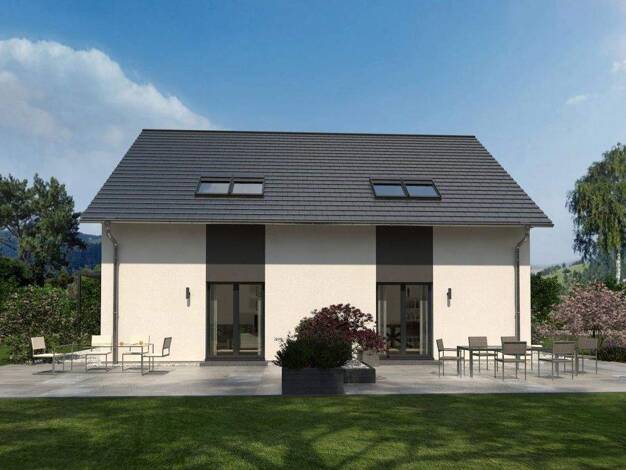 Klein, aber fein, so kommt unser Doppelhaus 07 daher. Unter dem eleganten Satteldach befinden sich zwei Wohneinheiten - und diese verteilen sich auf zwei Ebenen. Sie bieten ausreichend Raum und Komfo...