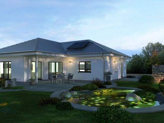 Hier wird ein umwerfendes Platzangebot mit intelligenter Raumaufteilung vereint. Der Winkelbungalow bietet ein Elternschlafzimmer mit Ankleide, welche direkt ins Bad führt, ein Kinderzimmer, Platz fü...