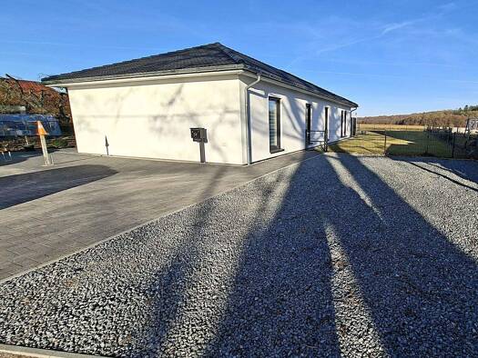 Objektart: - Einfamilienhaus im Bungalowstil - EG, Spitzboden als Kaltlager - Terrasse optional - Carport optional Grundstück: 1.518 m² Wohnfläche: ca. 117 m² Sonstiges: - Baujahr 2025 - Neubau im Er...