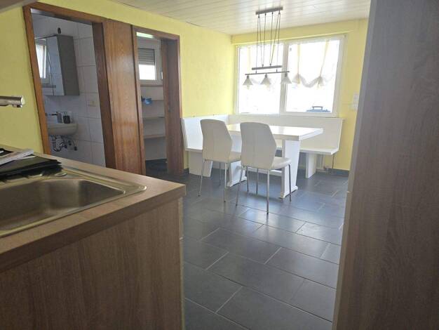 Die Wohnung erstreckt sich über das Erdgeschoss und das Dachgeschoss. Wohnung 2 EG: Diele 5,11 qm WC 1,80 qm Flur 6,79 qm Hauswirtschaftsraum 1,80 qm Wohnen/Essen 34,96 qm Kochen 8,73 qm Wohnung 2 DG...