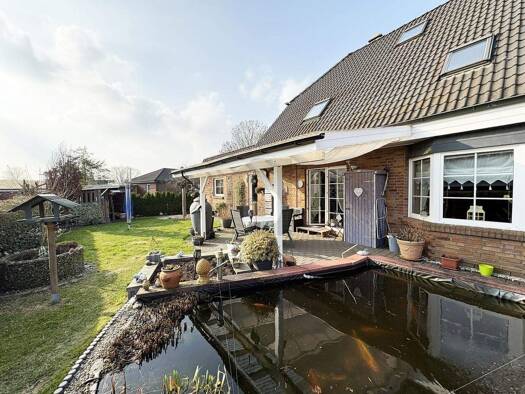 In ruhiger und naturnaher Lage nahe weitläufiger Felder befindet sich dieses äußerst gepflegte Friesenhaus aus dem Jahr 2005. Die Immobilie steht auf einem großzügigen, ca. 745 m² großen Grundstück u...