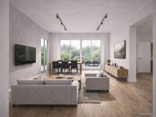 Erdgeschoss Bereits das Betreten des Hauses vermittelt Großzügigkeit und Klarheit. Durch die große Eingangstür öffnet sich zunächst ein einladender Windfang, der als geschützter Übergang dient und di...