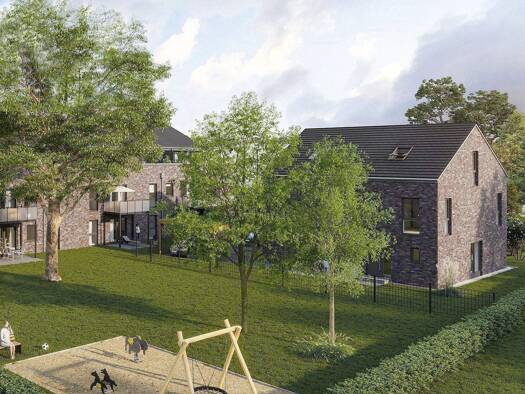 Unser elegantes Ensemble umschließt einen mit Bäumen bepflanzten Innenhof mit Kinderspielfläche, der nach Süden hin mit einer Hecke und weiteren Bäumen abschließt. Ungewöhnlich große Gartenanteile, B...