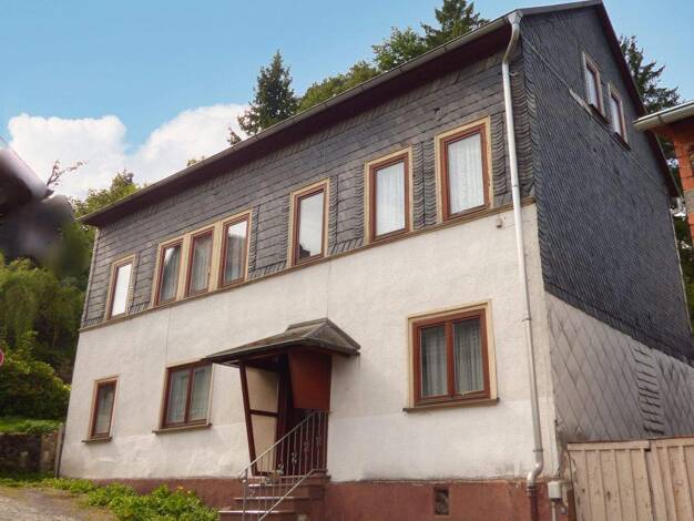 Das kleine Einfamilienhaus mit Grundstück, Nebengebäude und Garage in Gehlberg sucht eine fleißige Handwerkerfamilie. Das Erdgeschoss ist aufgeteilt in Flur, Küche, Waschküche, Badezimmer, Wohn- und ...