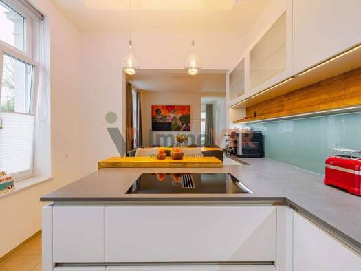 Stadtvilla mit Wohnfläche über 3 Etagen. Der Eingang erfolgt ebenerdig über einen Souterrain Bereich der schon heute 2 Zimmer mit Badezimmer bietet und noch weiterer Wohnraum geschaffen werden kann. ...