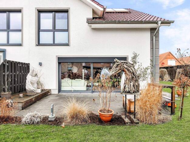 Kirchlinteln-Luttum In angenehm ruhiger Wohnlage befindet sich diese neuwertige und lichtdurchflutete Doppelhaushälfte mit Carport und einem zusätzlichen PKW-Stellplatz. Familien mit Kindern profitie...